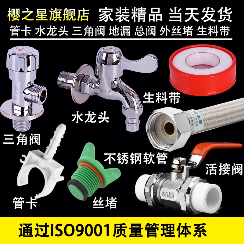 Sakura star triangle valve All copper toilet water heater Washing machine angle valve Four-point cold and hot universal switch water stop valve