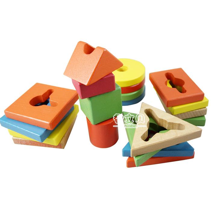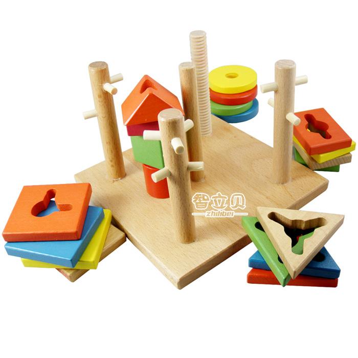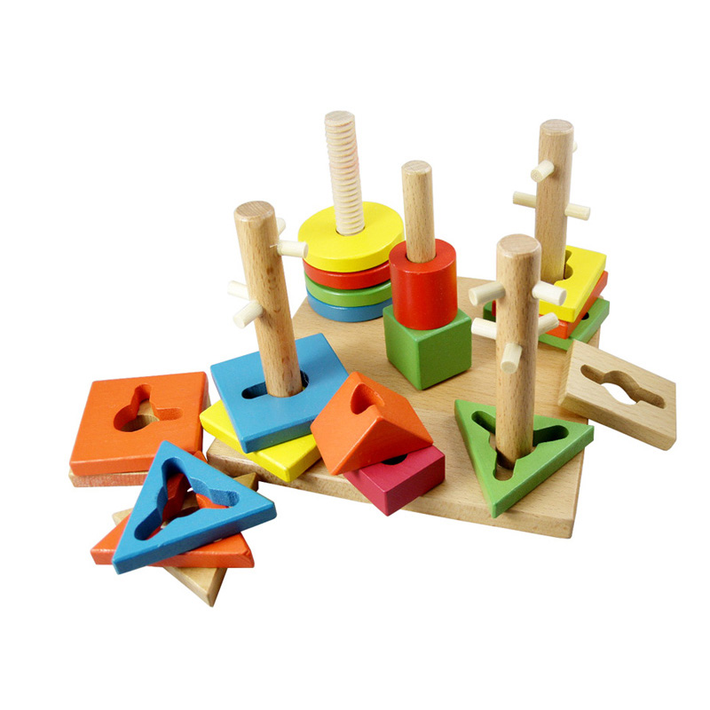 Infant children Baby boys and girls puzzle power set column toy Wooden five-column set Geometric shape matching building blocks