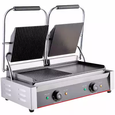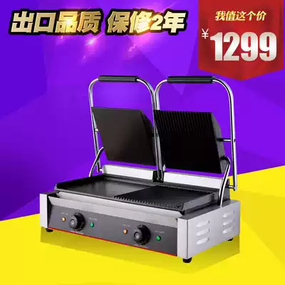 Double-sided electric steak stove left pit right flat heating voltage board GH-813 Panini equipment Teppanyaki commercial steak machine