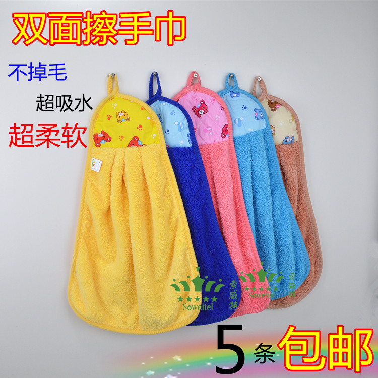 Hanging type hand towel cute coral velvet wipe towel towel thick super absorbent kitchen wipe handkerchief handkerchief hand towel
