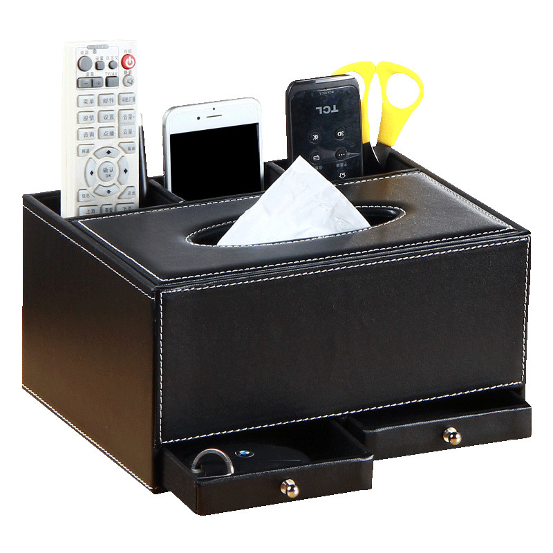 Household leather drawer tissue box Toilet paper box Creative facial towel box Coffee table remote control storage box Removable toilet paper box large