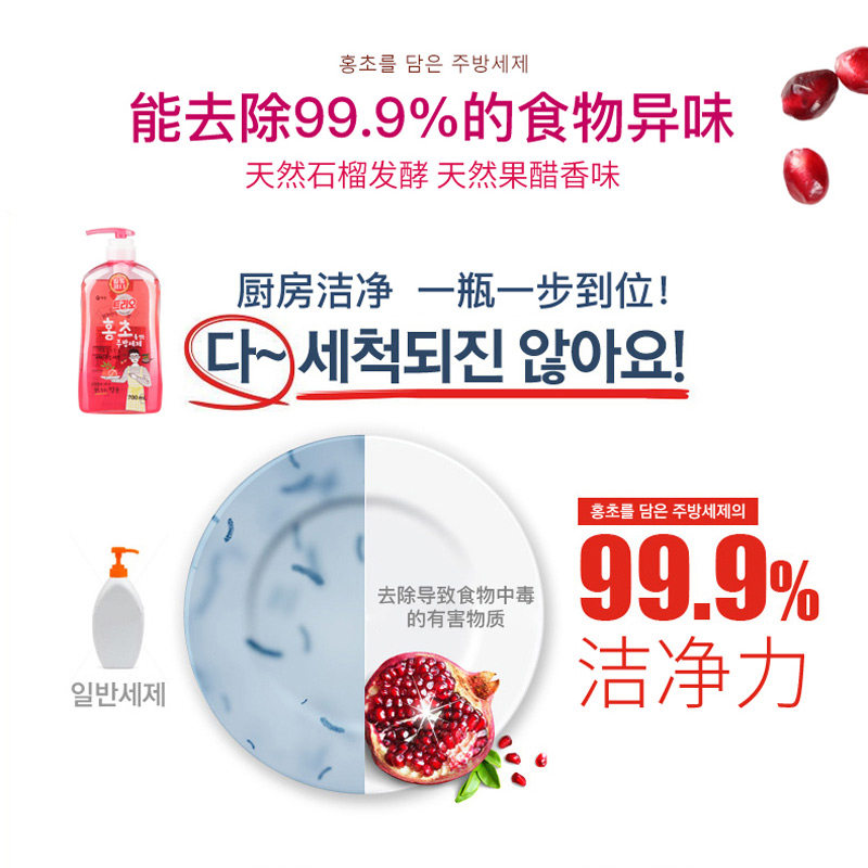 South Korea imported Aijing pomegranate red vinegar detergent 700ml VAT home fruit and vegetable tableware household dishwashing liquid