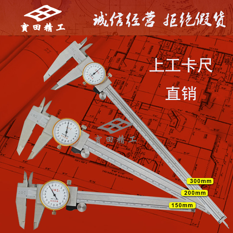 Shanggong stainless steel belt table caliper 0-150 200 300mm two-way shockproof vernier caliper