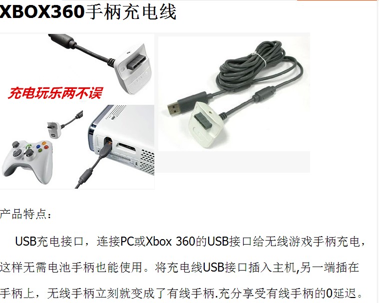 XBOX360 wireless handle charging cable USB magnetic ring charging cable 360 handle charger handle direct charge