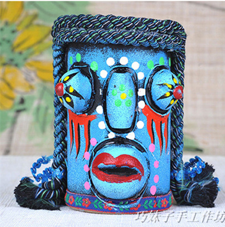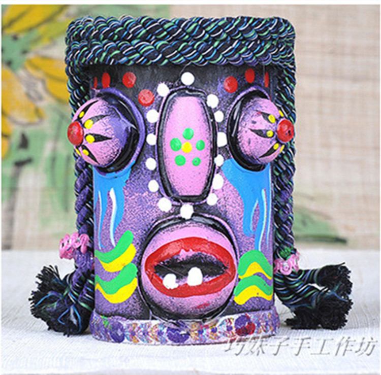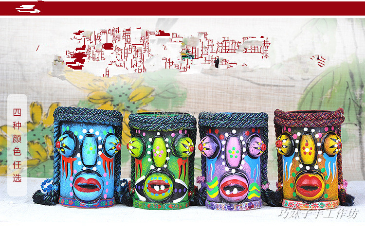 Ethnic Wind Handicraft Dongba Featured Swallowed Face Spectrum Colored Hand-painted Pen Holder Creative Handmade Ornament Swing-Taobao