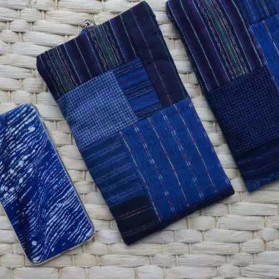 (Time boat) hand woven cloth cloth cloth cotton anti-fall mobile phone bag storage bag iphone applicable