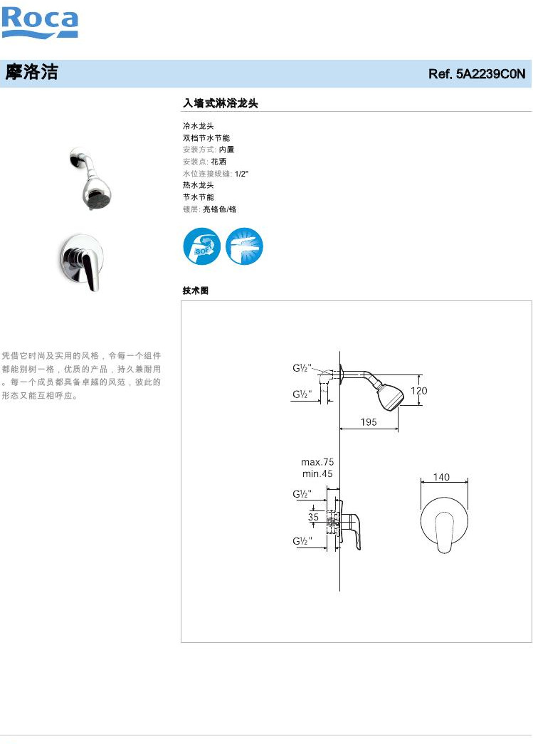 Roca Roca bathroom Morogie in-wall shower faucet Chrome 5A2239C0N