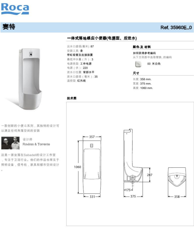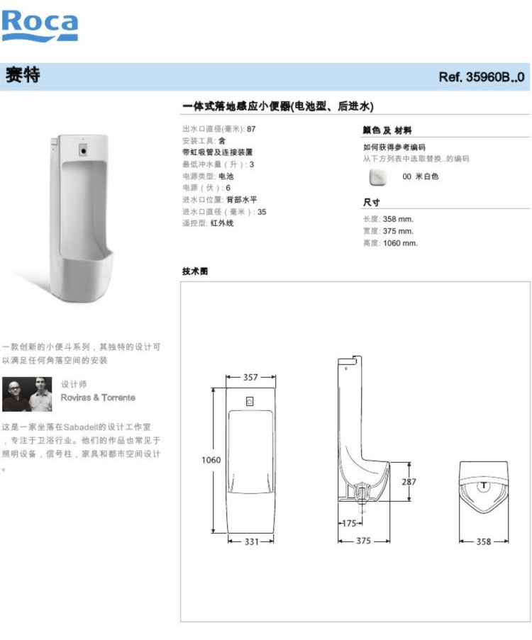Roca Lesette 35960B000 35960E000 Floor-standing Induction Urinal Battery Power Type