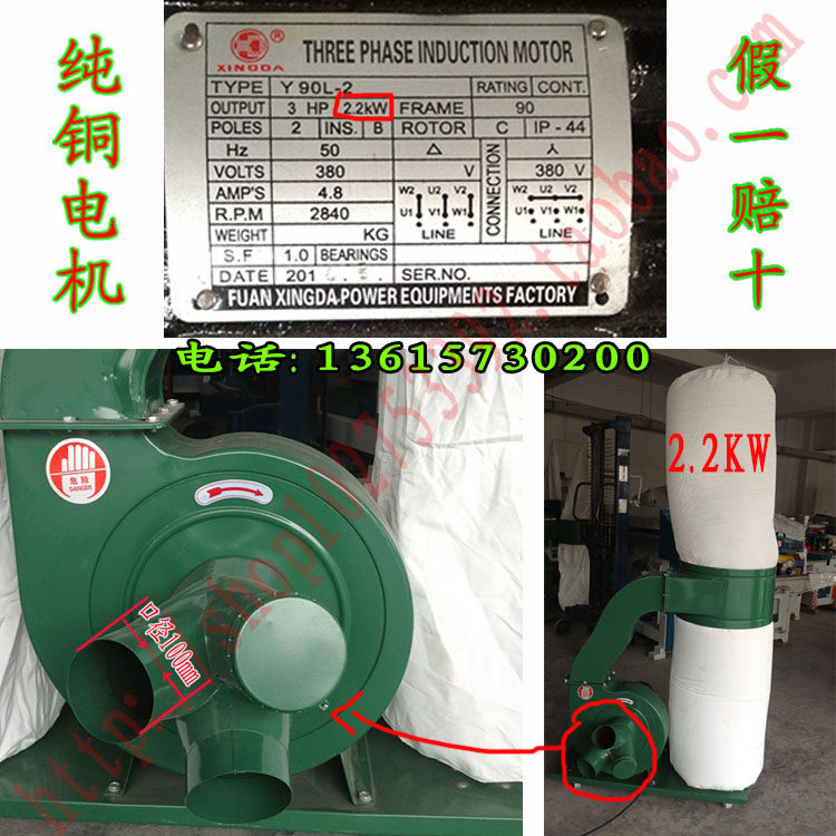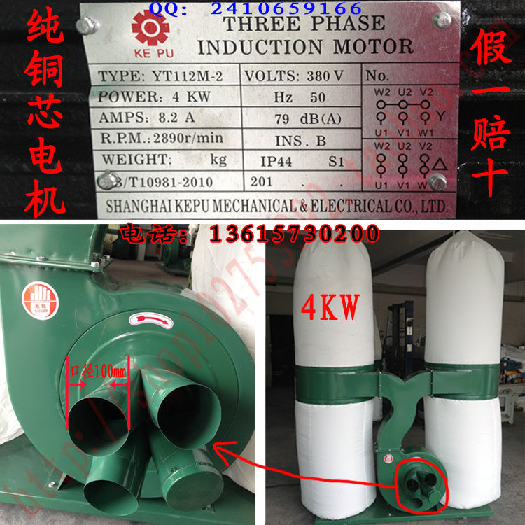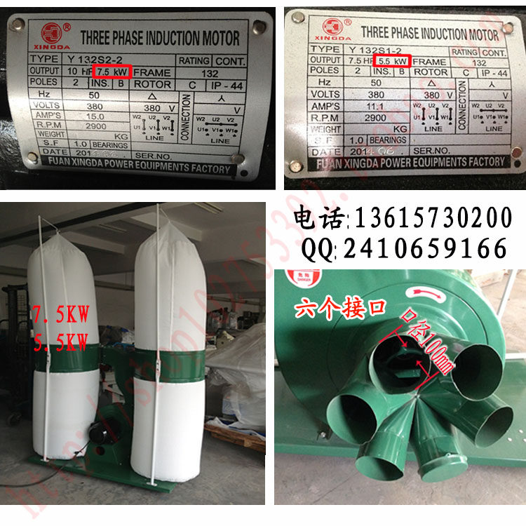 1 5 2 2 3 4 5 5 7 5KW Single double groove cloth bag woodworking special suction dust machine industrial dust collector