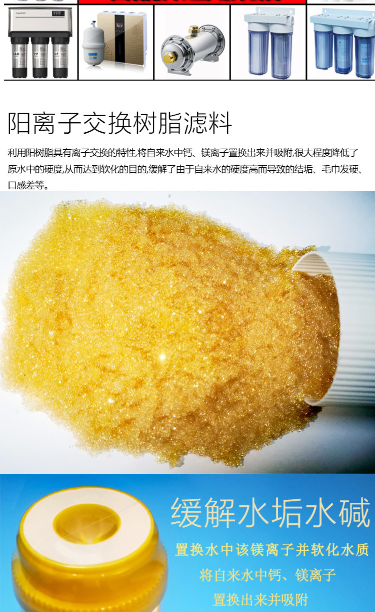 Water purifier filter element 10 inch universal flat pressure 10 inch cationic resin filter element softening and descaling resin core