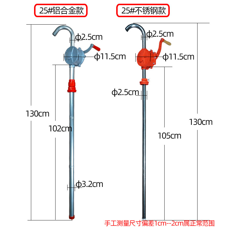 Aluminum alloy large hand rock pump aluminum alloy hand rock pump 25#stainless steel (gasoline special)