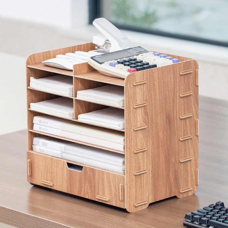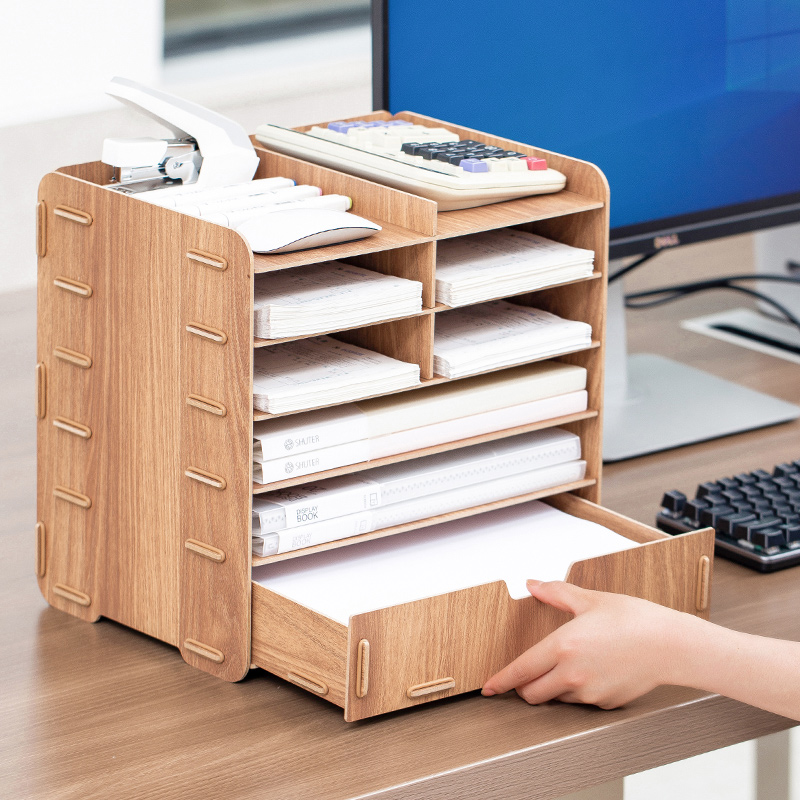 Multilayer File Shelf Drawer File Shelf Multilayer Information Shelf Office Wooden File Frame Office Paper Frame Office Document Shelf Student File Box Desktop Finishing Containing Shelf