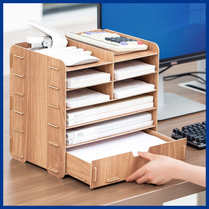 Multi-layer file rack Drawer file rack Multi-layer data rack File storage rack Office wooden file frame Office file rack Storage rack Student file box Desktop finishing storage rack