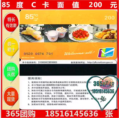 85 degree C card cash card 200 yuan beverage cake coupon bread card nougat coupon national Universal