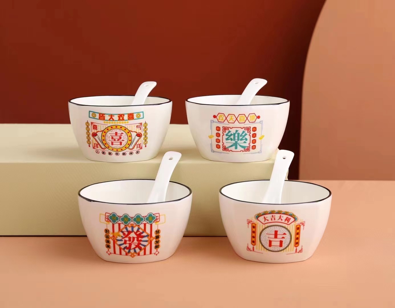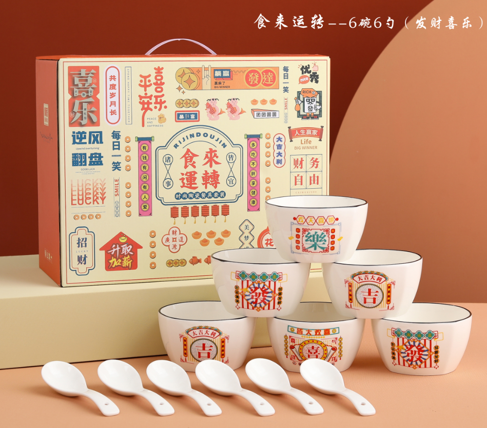 Food to run ceramic tableware gift box set 6 bowls 6 spoons household promotions gift gift custom logo