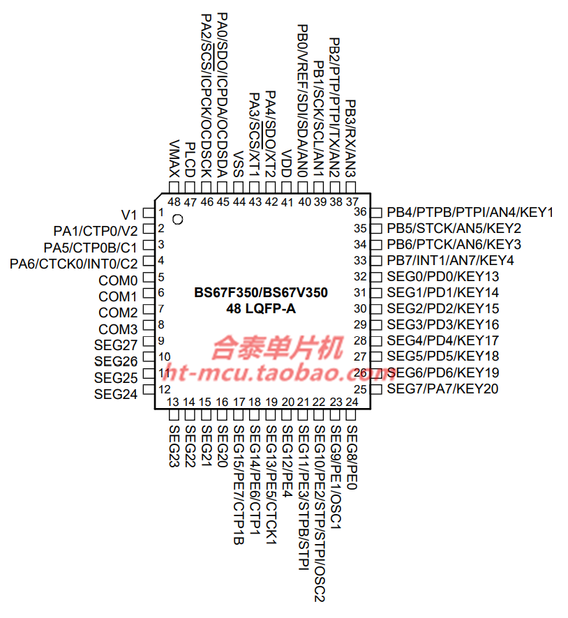 Taiwan Hetai original BS67F350 48LQFP capacitive touch button MCU with AD LCD driver