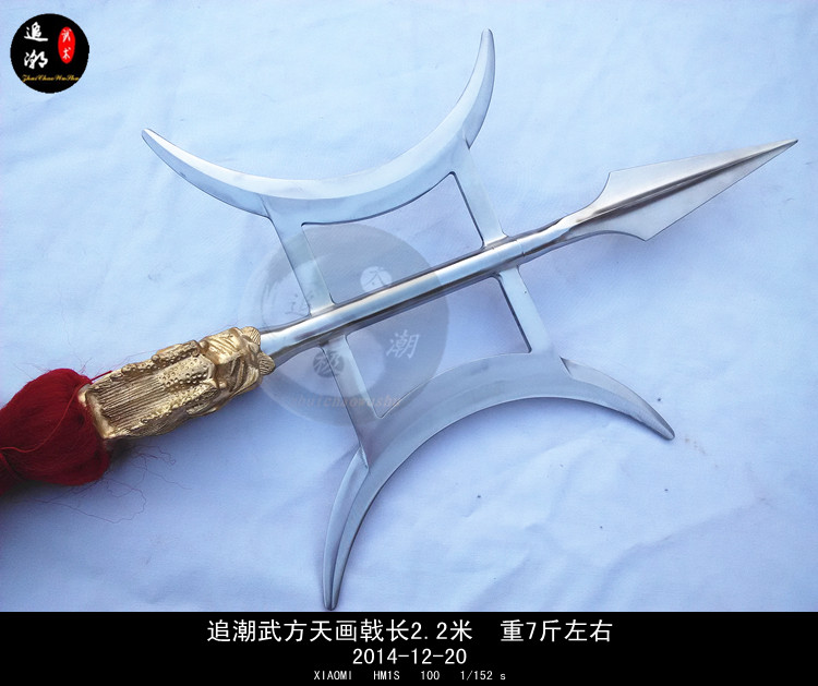 Stainless steel Fangtian painted halberd Lu Bu weapon white wax rod double halberd leading halberd single halberd 2 5 meters long halberd uncut