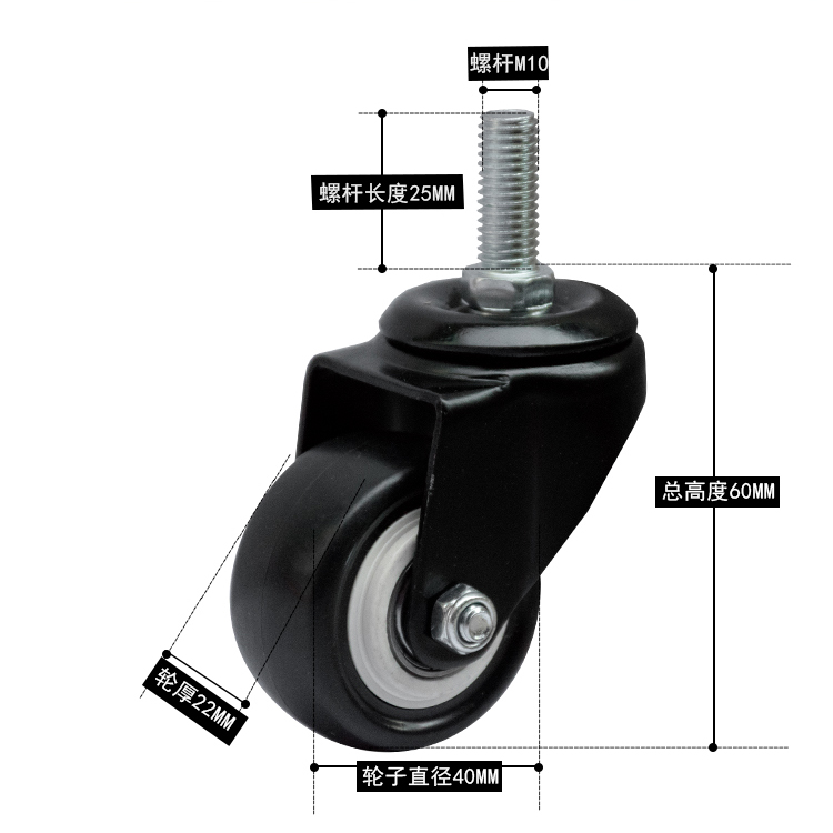 1 5 inch M10x25 screw rod dual bearing polyurethane silence wear - resistant universal wheel brake wheel furniture caster wheel wheel
