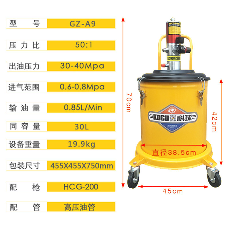 Oil machine pneumatic grease gun 30 liters oiler accessories Keqiu butter machine GZ-A9 high pressure grease gun manual