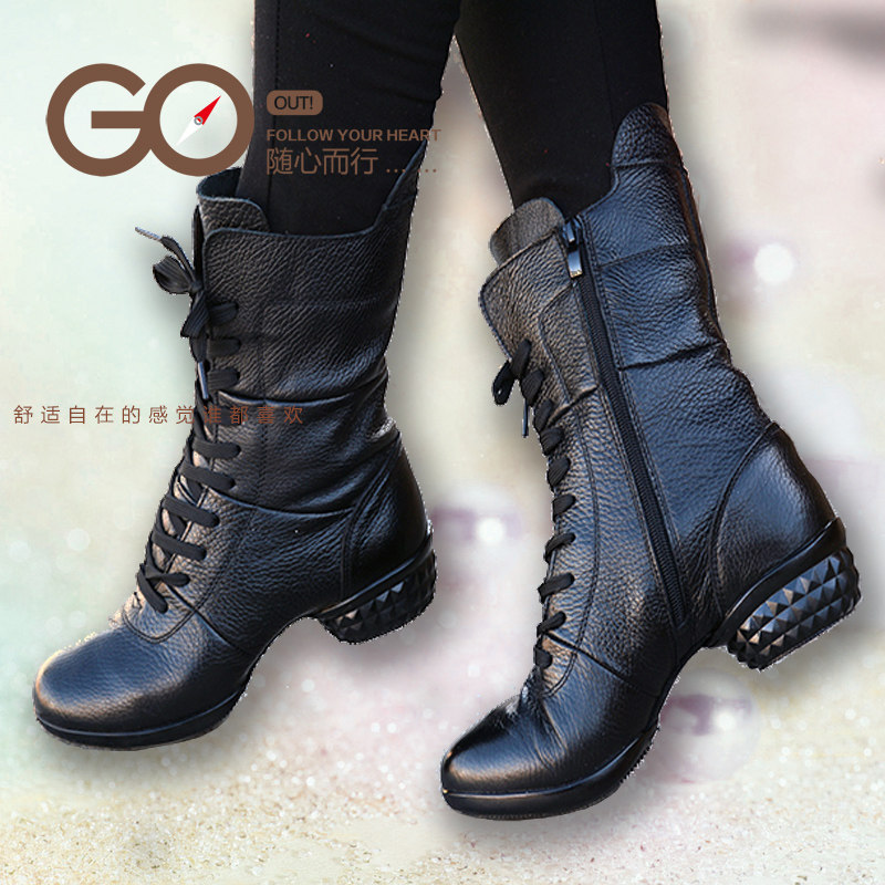 Belle Girls Dance Shoes Genuine Leather Dance Boots Spring Autumn Single Layer Leather Square Dance Shoes Women's Dancing Shoes Soft-bottom Modern Dance Shoes