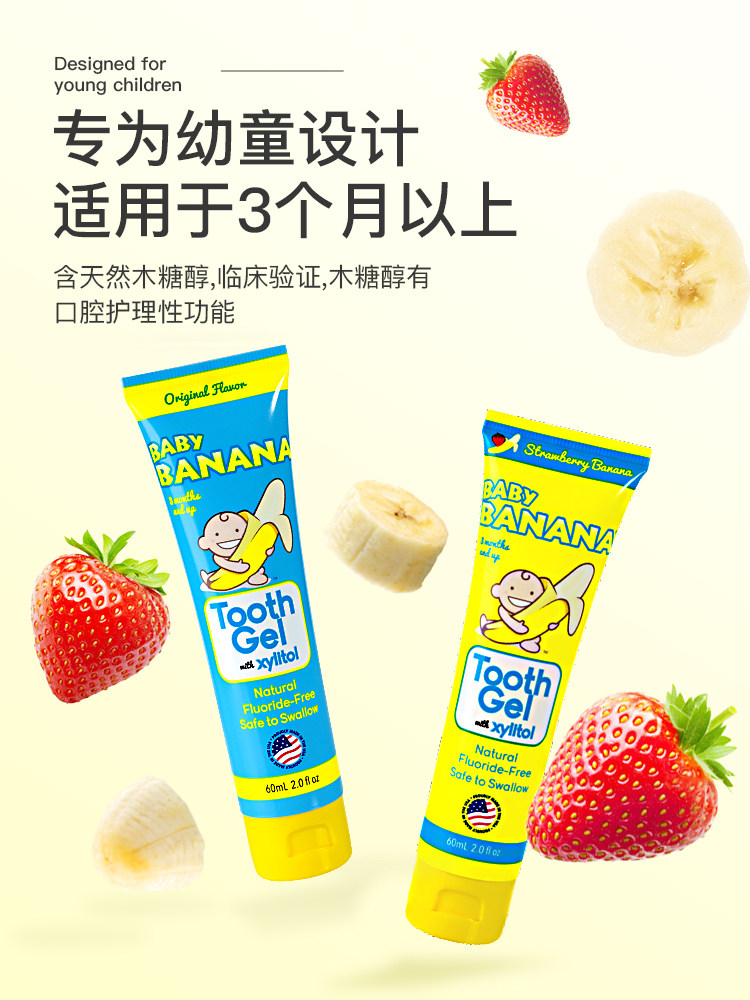 babybana banana baby children toothpaste can be swallowed baby neux strawberry taste flueless 0-12 years old