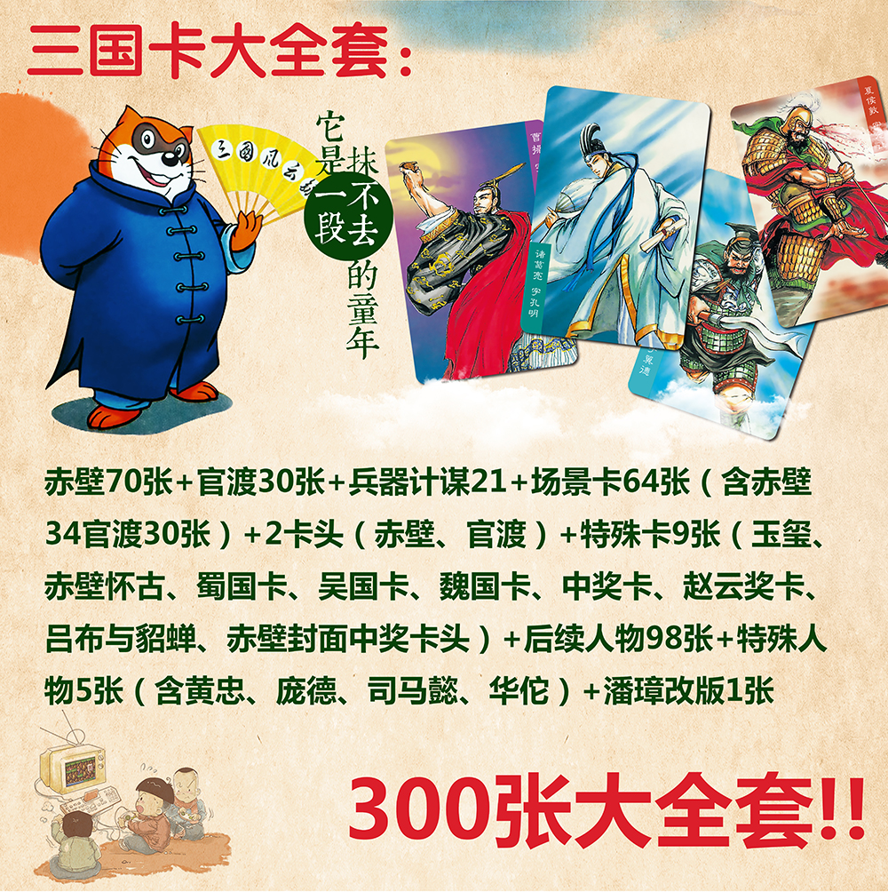 Little Raccoon three Kingdoms card full set of three kingdoms Fengyun record Chibi Guandu strategy weapon scene 300 cards to send the outlaws