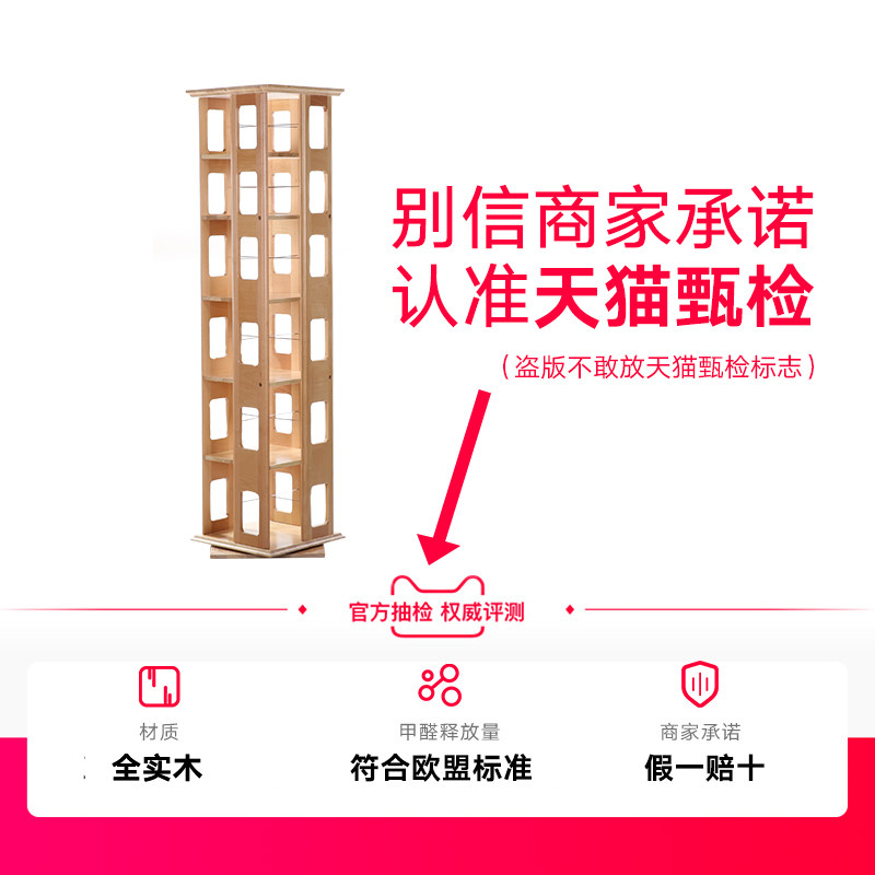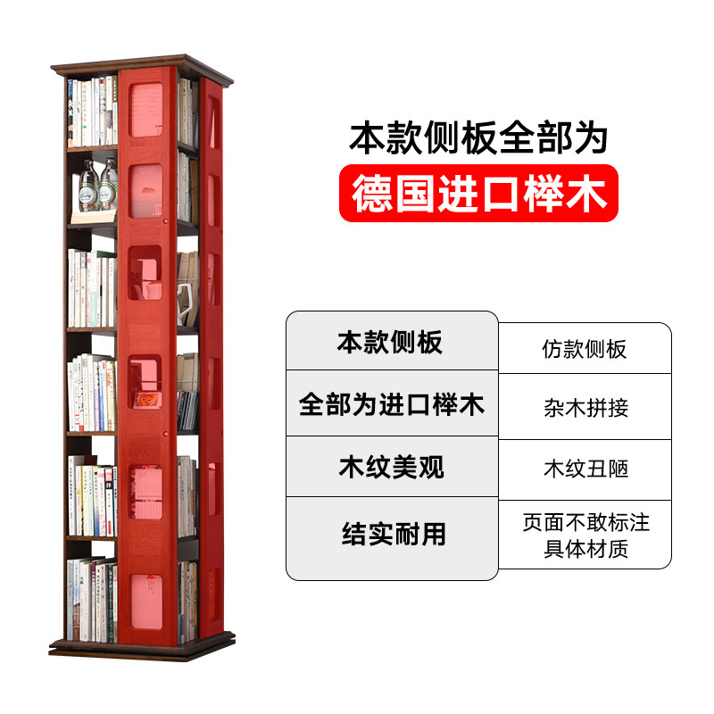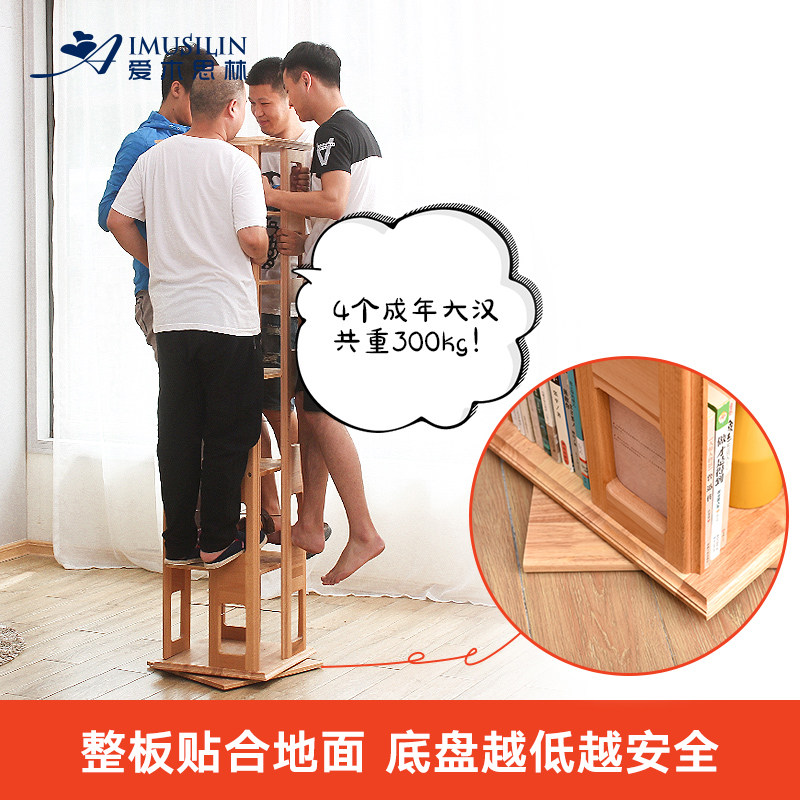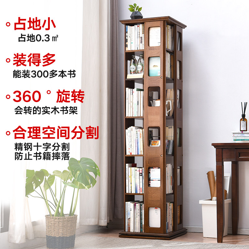 Rotary bookshelf 360 degree bookcase floor-to-ceiling solid wood simple shelf Creative simple storage student living room household