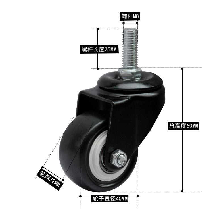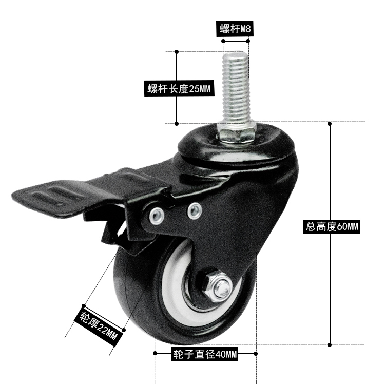 1 5 inch M8x25 screw biaxial polyurethane mute wear-resistant universal wheel brake wheel furniture trolley caster wheel
