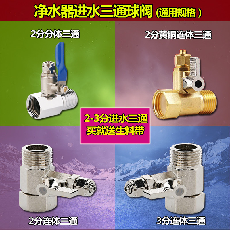 Household water purifier faucet water inlet three-way 4-point turn 2-point water pipe water purifier with switch valve connector accessories