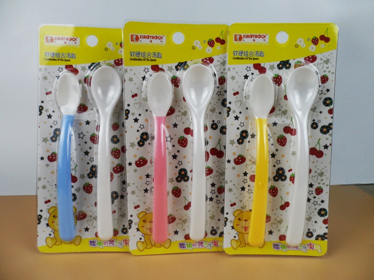 Baby Silicone tablespoon soft and hard combined tablespoon silicone spoon bicolor spoon spoon stainless steel fork spoon suit