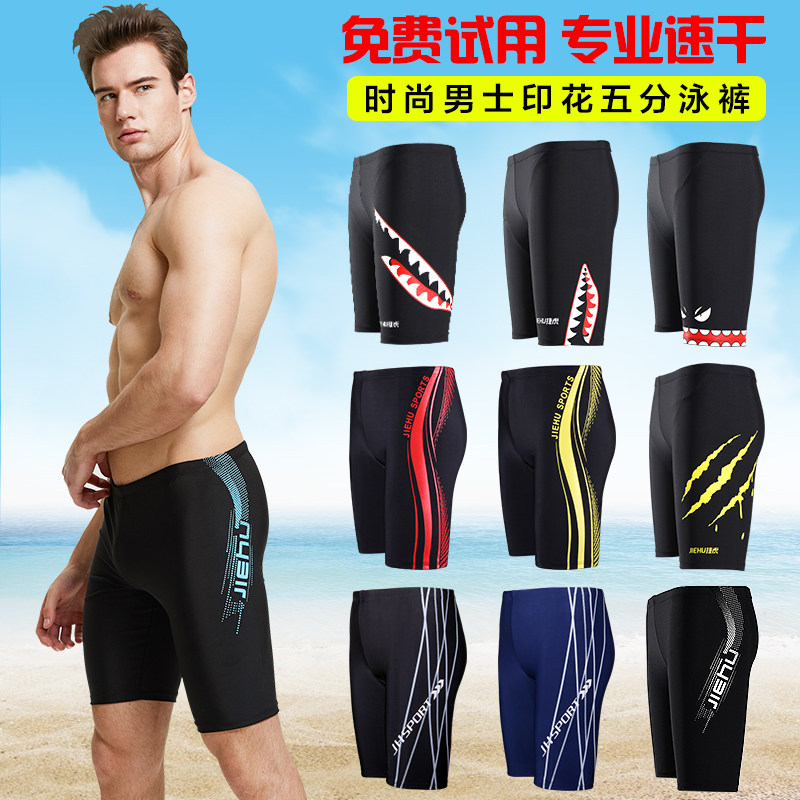 Jaguar men's 50% swim trunks comfort low waist length version swimming pants male spa swimsuit breathable quick dry swimming gear