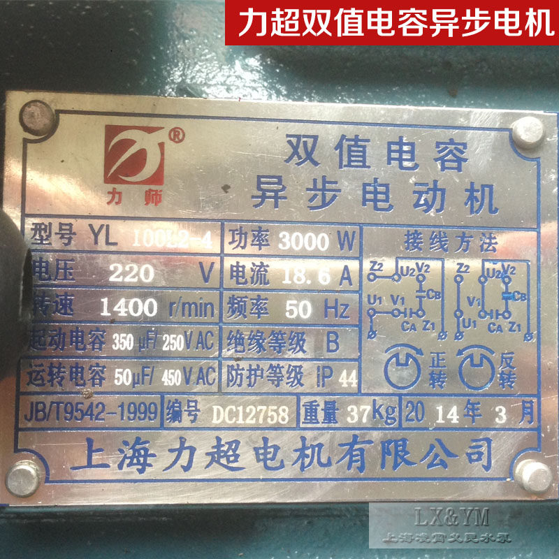 Shanghai big speed big high motor YL100L2-4 double value capacitor asynchronous motor single phase 220V quality assurance
