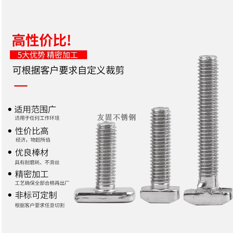 Friendly 304 stainless steel T-type screw bolt m8*25 8*40 m8*50 m8*65 non-standard customization