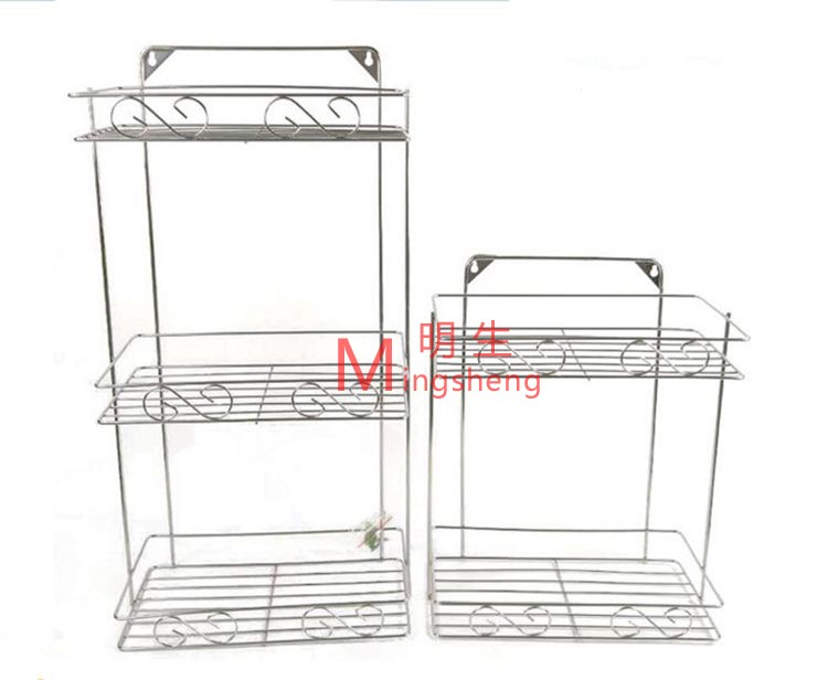 Stainless steel kitchen bathroom triangle shelf Punch-free square seasoning rack Powder room storage wall shelf