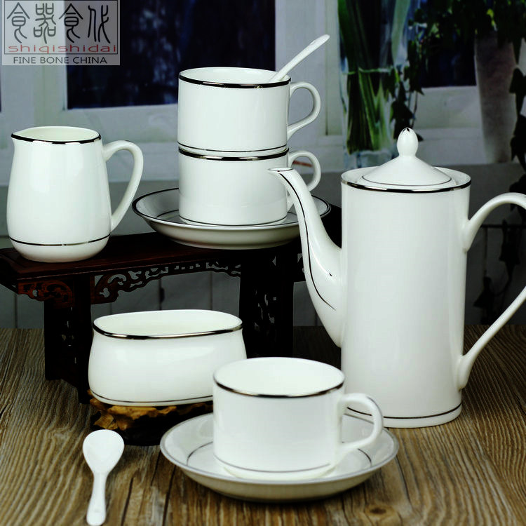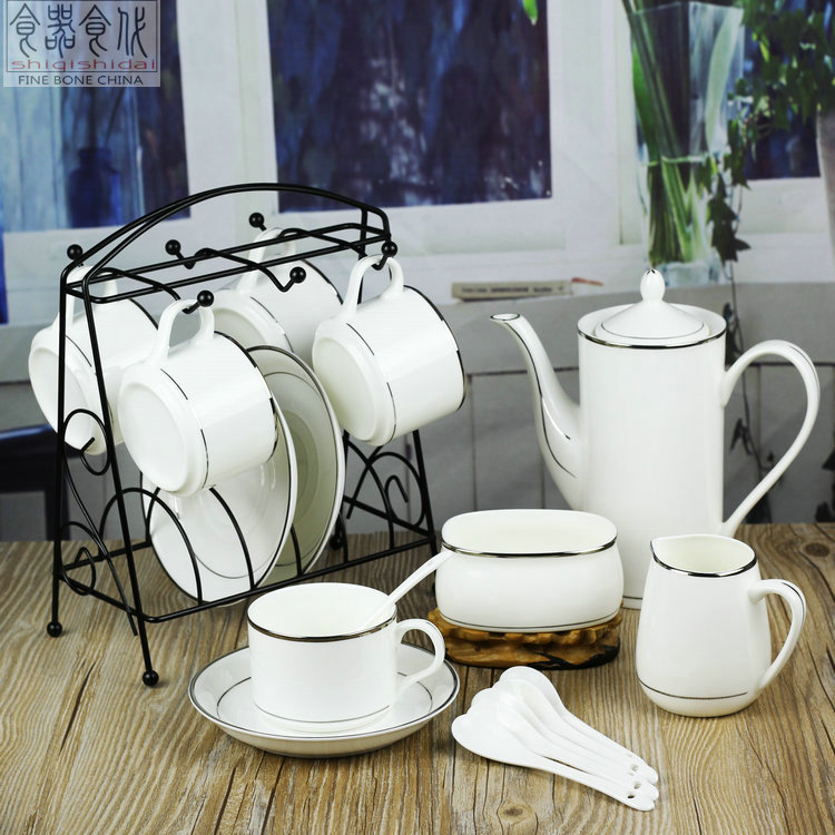 Food utensils Food generation 15 coffee bone China silver edge English afternoon tea set Simple European coffee cups and saucers with shelves
