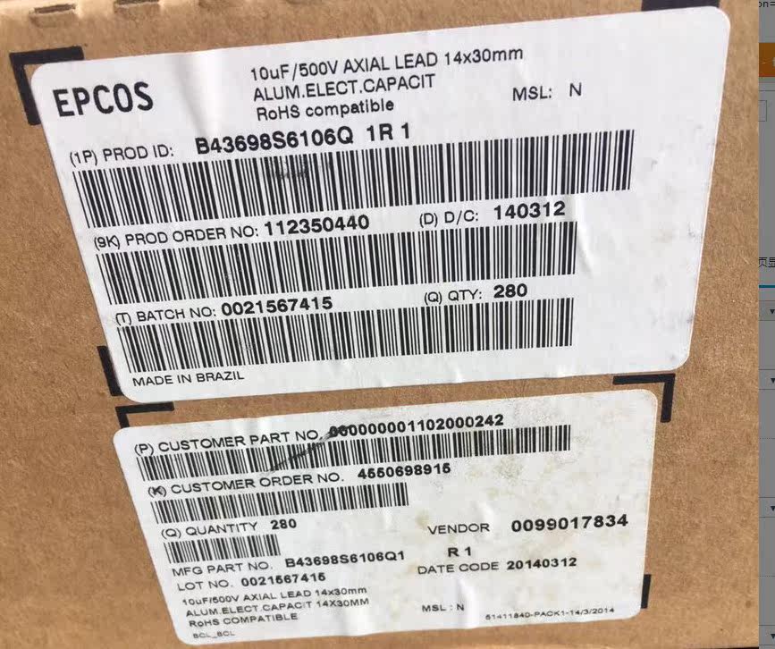 Original Siemens (B43698) 10UF500V fever bladder wave electrolytic capacitor