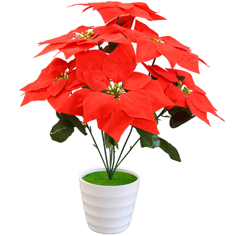 Simulation Flowers Silk Flowers Fake Flowers A Pint Of Red Potted 7 Heads Christmas Flowers Jerky Christmas Red Living Room Indoor Plastic Decoration Swing Accessories