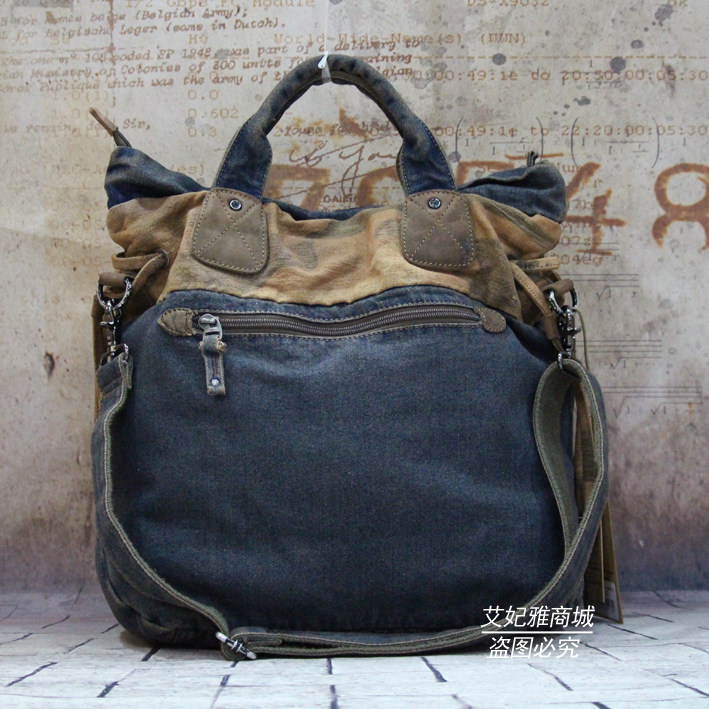 Yagnu European and American big bag retro denim Diagonal Satchel Bag Men's Bag Carry-on and Inclined Cross Rivet Casual Trend