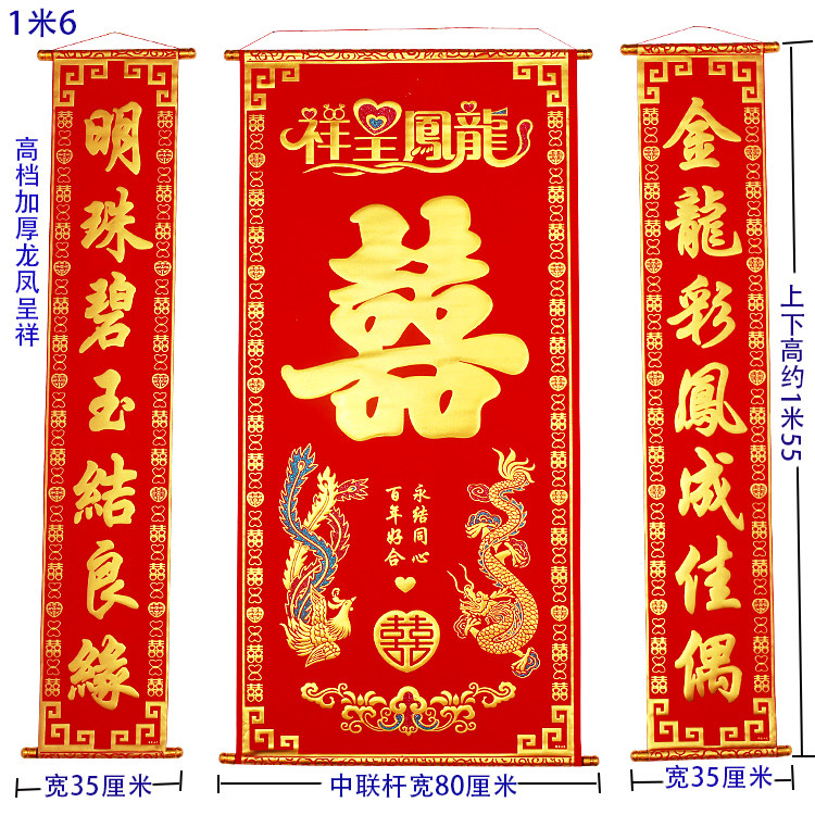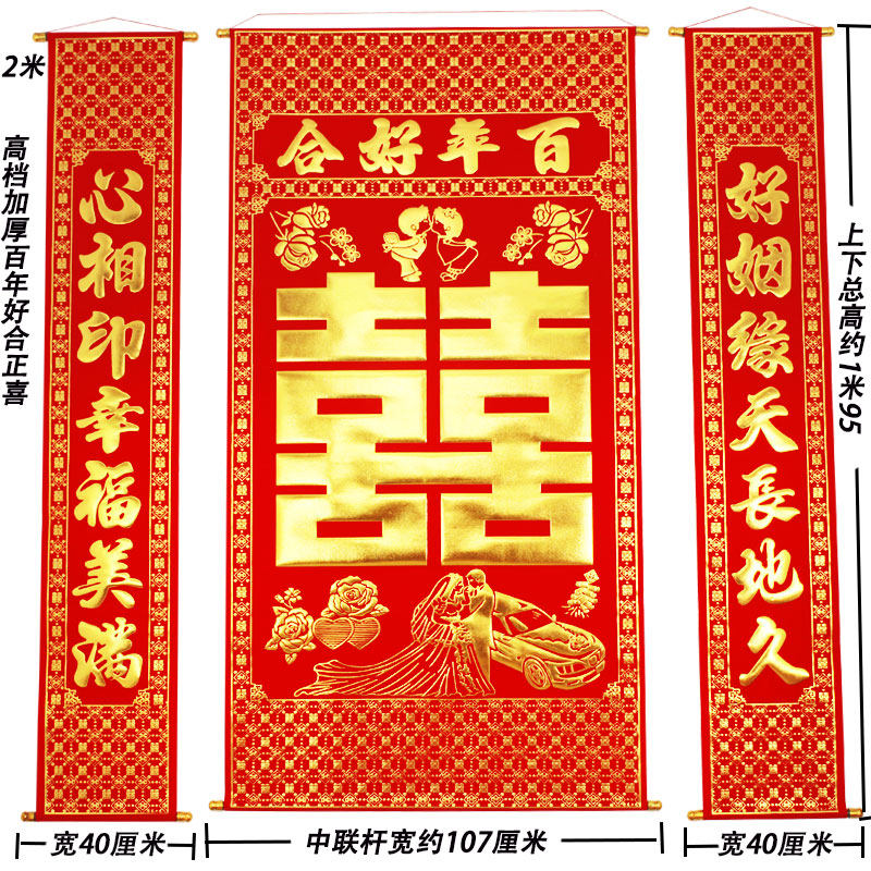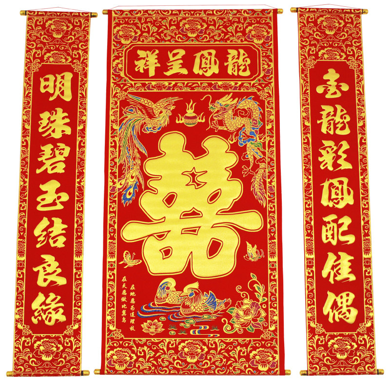 High-grade thickened velvet cloth bronzing happy words in the hall hanging paintings wedding wedding wedding living room hanging paintings couplets rural halls