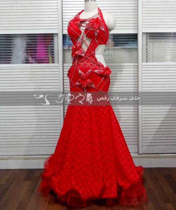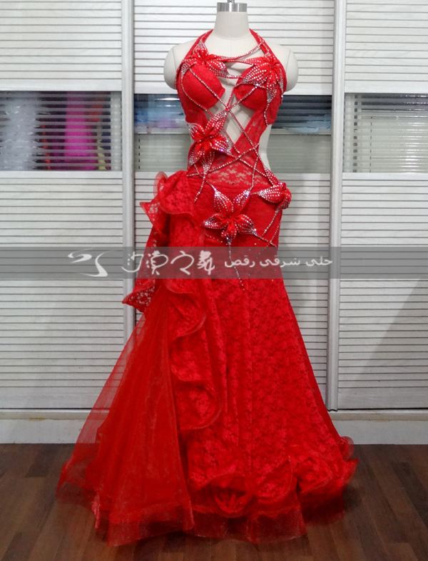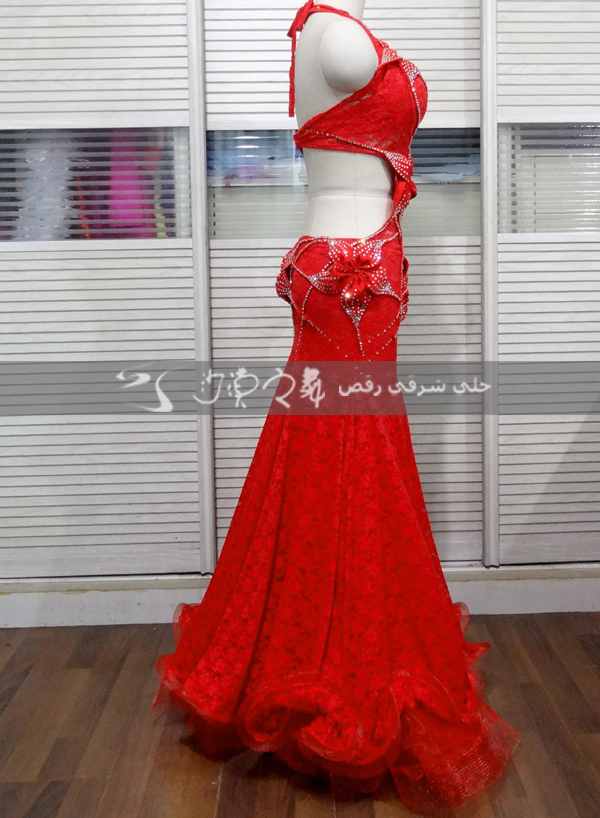 Belly dance performance dance performance out of a large red Lieven body large red solid suit tailor-made to be made