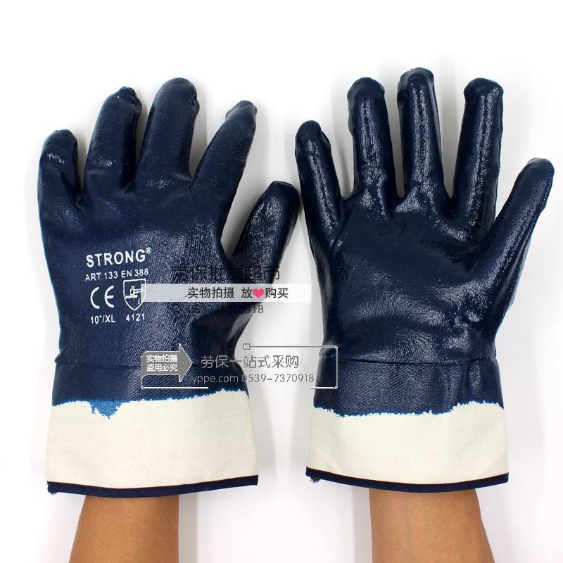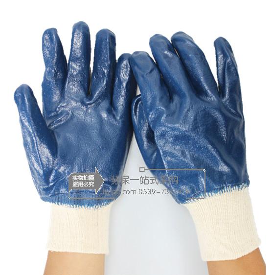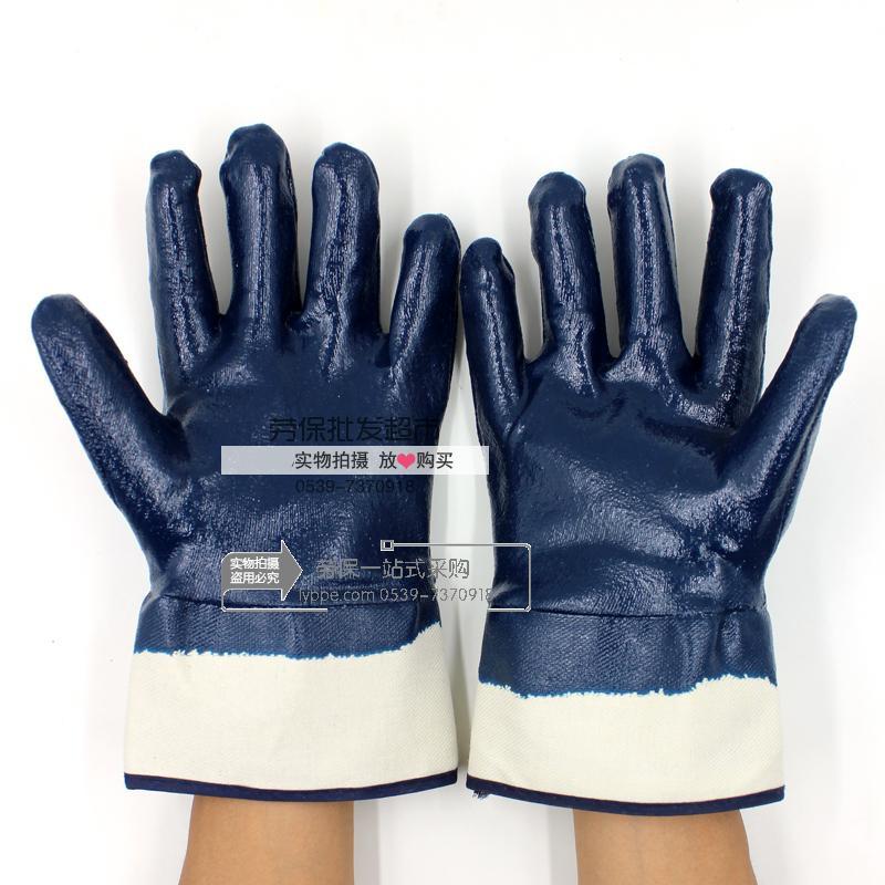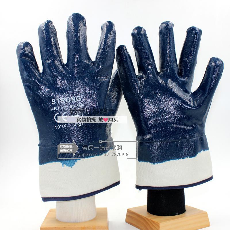 Blue nitrile large mouth canvas sleeve oil-resistant rubber gloves wear-resistant mechanical full hanging dip thickened canvas gloves