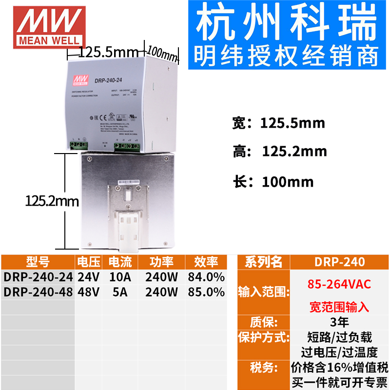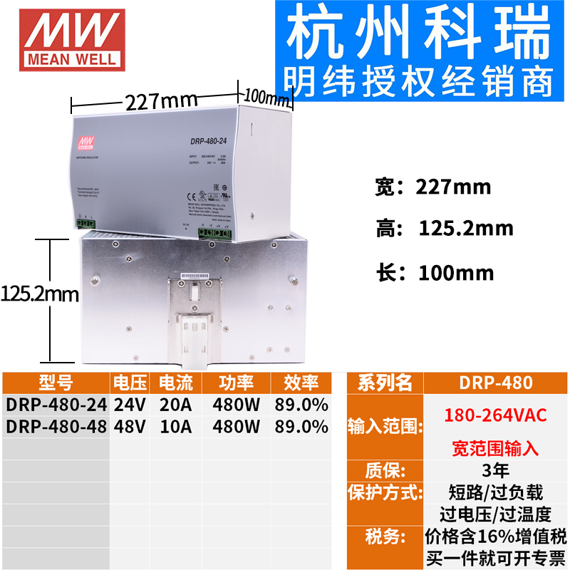 Taiwan Mingwei rail switching power supply DRP series 240480 480S-24V48V single-phase with PFC
