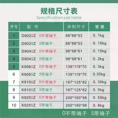 D9020Z Without terminal D9025Z with terminal D9040Z Without terminal D9045Z with terminal K9060Z Without terminal K9065Z with