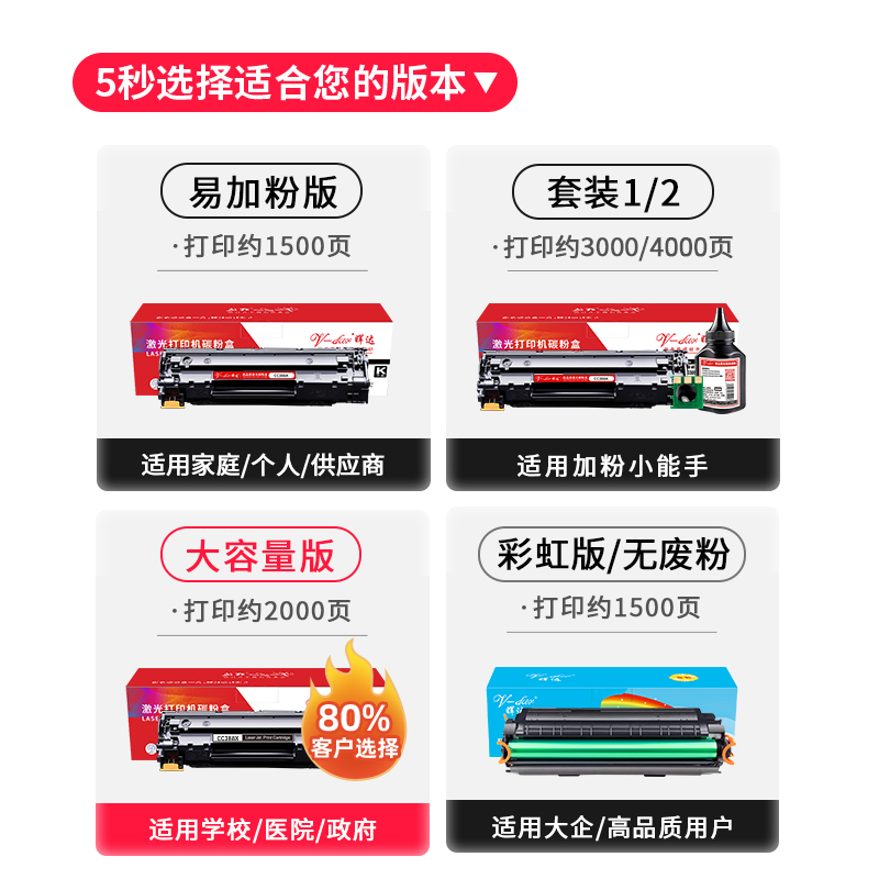 Non-easy to add powder(standard version-1500 pages)Print stable Easy to add powder 4 pcs(print about 6000 pages as low as 24 9 pcs) Buy 10 get 1 free(Easy to add powder version-1500 pages) Print stable Easy to add powder 4 pcs (print about 6000 pages as low as 24 9 pcs) Buy 10 get 1 free (Easy to add powder version-1500 pages