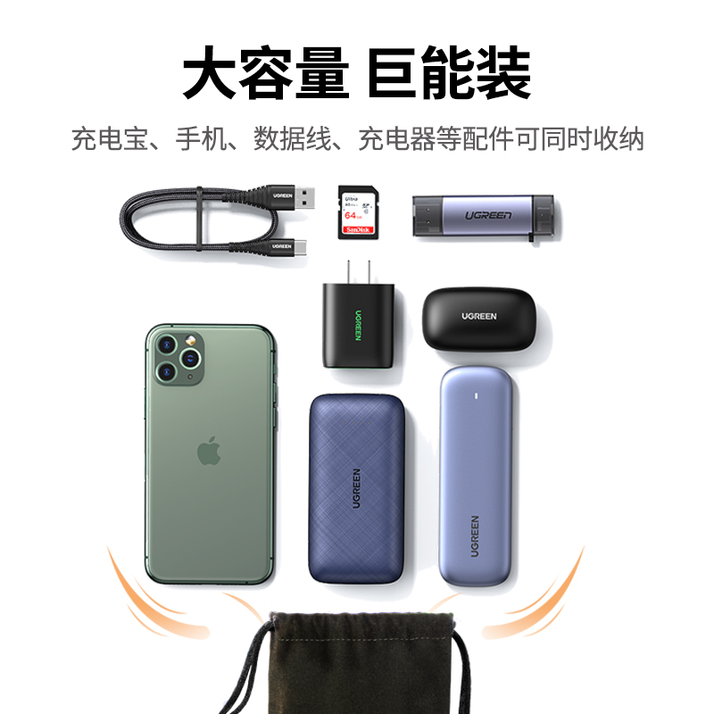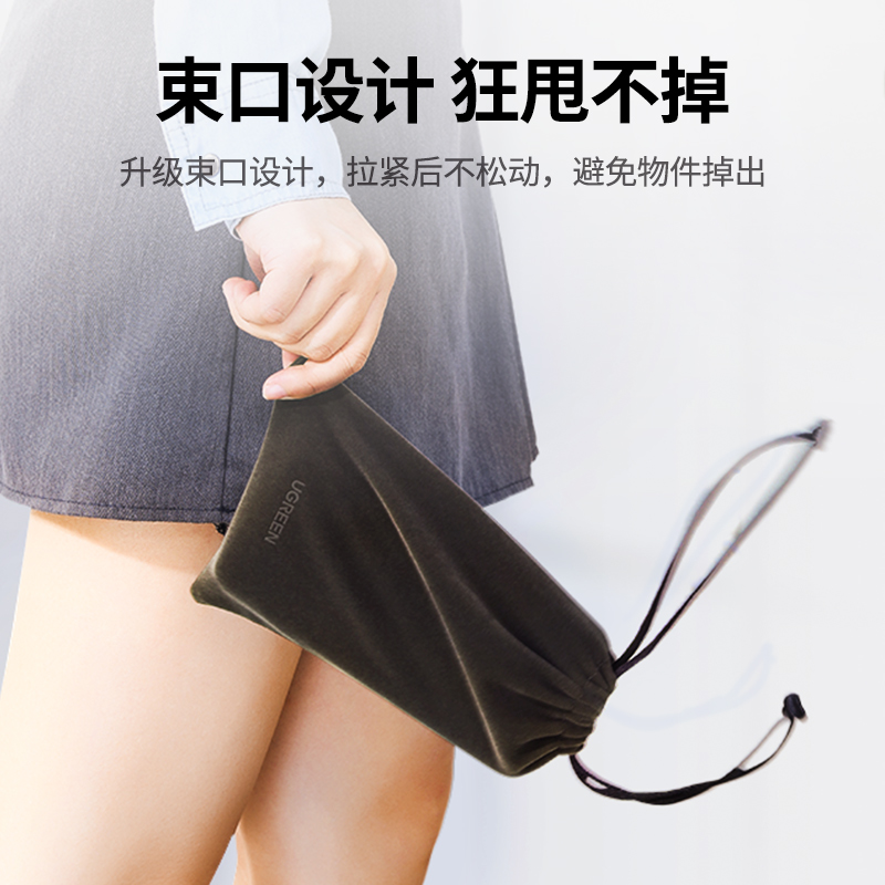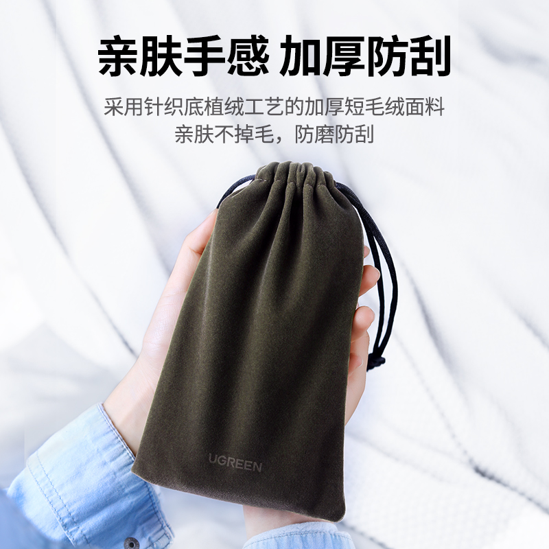 Green union mobile charging Mobile phone storage bag Protective case Mobile power charger Data cable Headset Portable hard disk finishing bag Drawstring drawstring pocket Small mini flannel bag cover Convenient storage bag