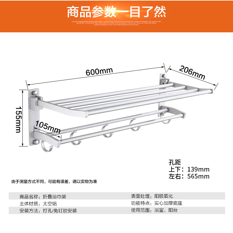 Folding bath towel rack 60cm (punching) folding bath towel frame 50cm (punching) folding bath towel frame 60cm (free punching fitting adhesive)folding bath towel rack 50cm (free punching plastic)