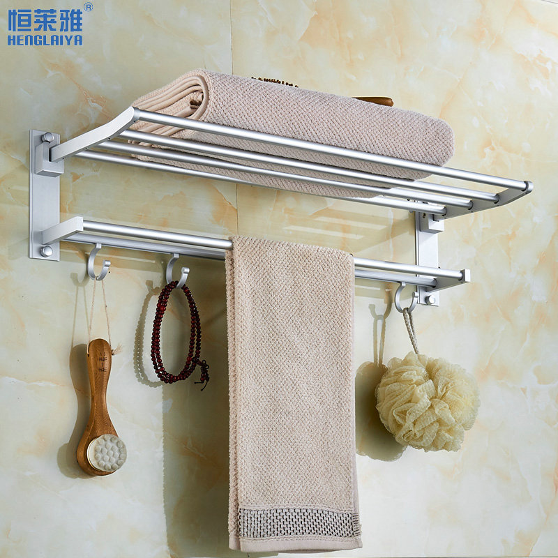 Towel rack-free space aluminum bath towel rack Bathroom cosmetic rooms folded bathroom hardware hanging pin