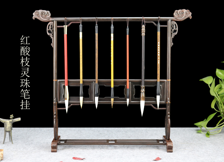 Mahogany carving crafts brush hanger large red sour branch rosewood round best gift Lingzhu 14 needle display stand collection
