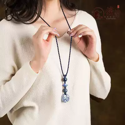 Blue and white porcelain pendant pendant Chinese style sweater refining long version national style necklace retro hanging decoration accessories decoration female
