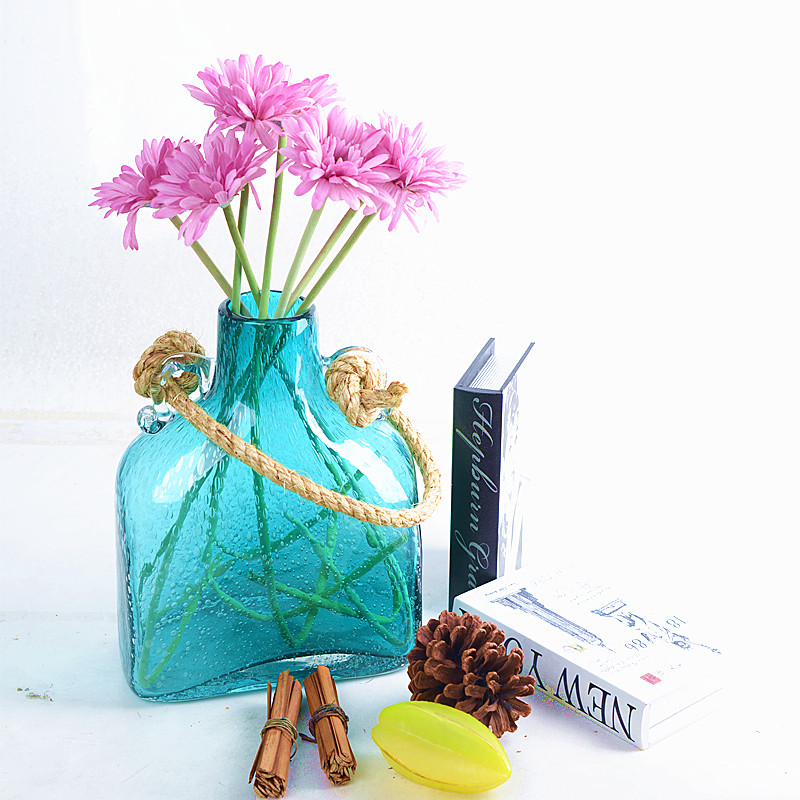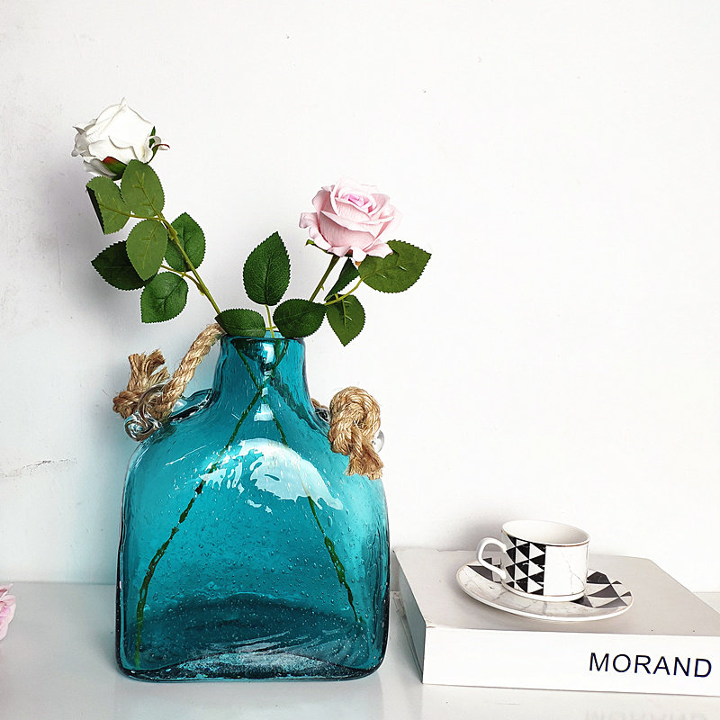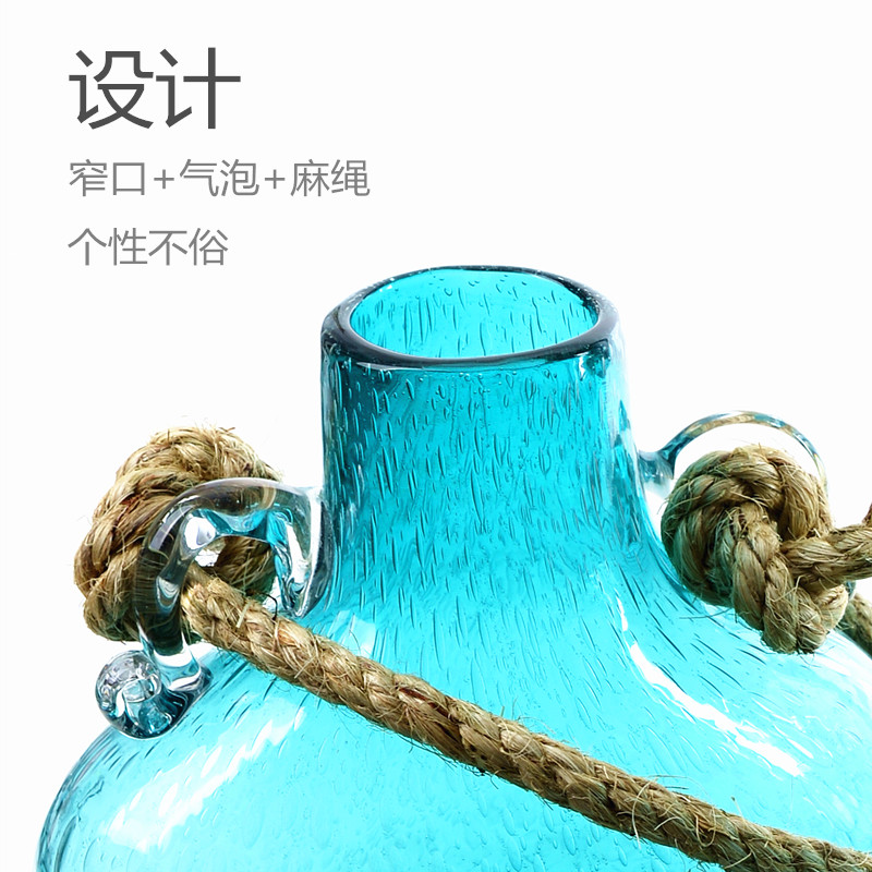 High-end blue glass vase fittings creative decoration living room sample house decoration home decoration decoration flower